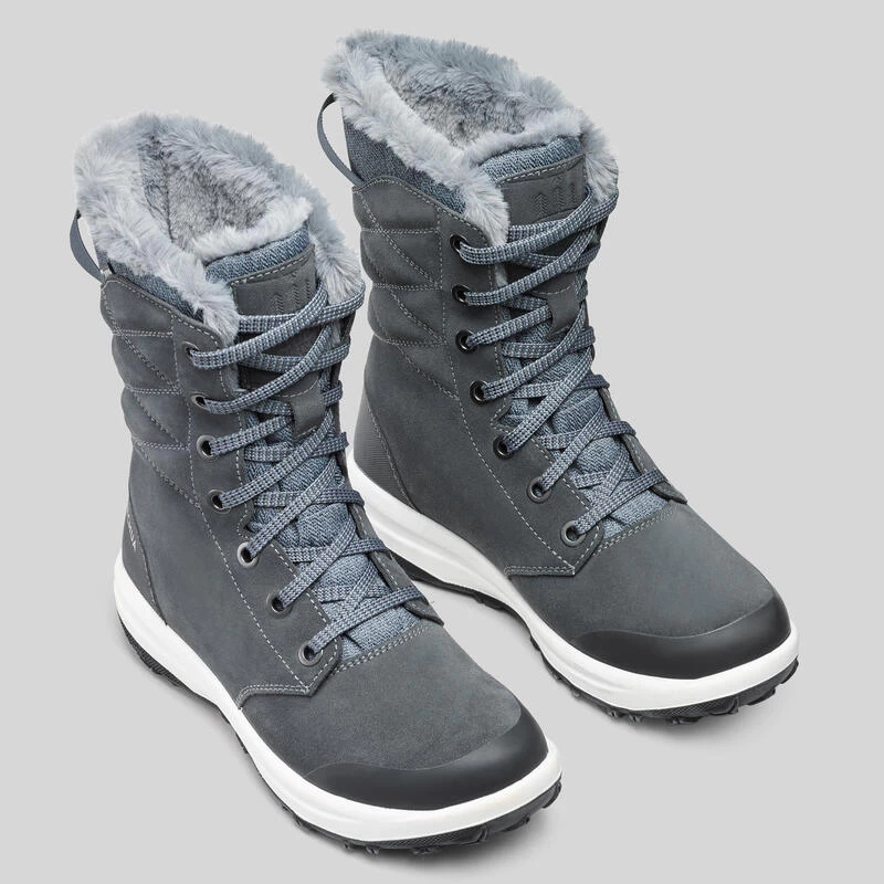 Botas De Nieve Y Apreski Impermeables De Piel Mujer Quechua SH500 U-Warm Gris