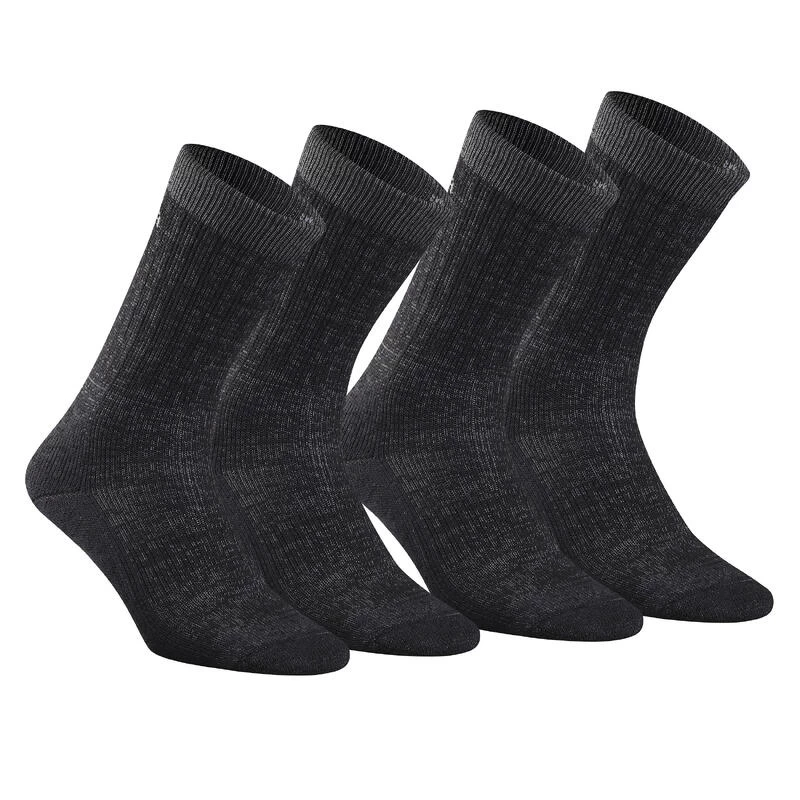 Compra en Decathlon Calcetines térmicos de montaña y nieve lana merino 2 pares Quechua SH100 U-Warm Estos calcetines de lana merino han sido diseñados para mantener los pies abrigados en tus rutas con frío intenso.