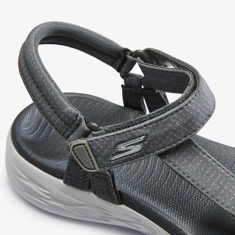 Compra en Decathlon Sandalias caminar Mujer Skechers Onthego gris Esta sandalia para tus salir a caminar a diario con tiempo cálido. Con una suela cómoda, muy ligera y flexible. Con cierre ajustable con tira autoadherente.