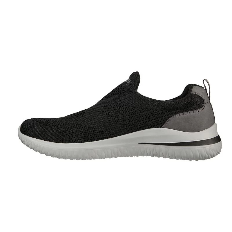 Compra en Decathlon Zapatillas Caminar Hombre SKECHERS Delson 3.0-Fairfield Negro Con un diseño exterior textil de la mejor calidad, estas zapatillas cuentan con una plantilla de Memory Foam acolchada y amoldable al pie, buena sujeción en el empeine y suela de goma antideslizante.