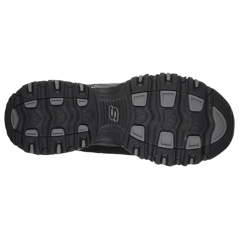 Compra en Decathlon Zapatillas Caminar Mujer SKECHERS D’Lites Negro Zapatillas en piel Trubuck con plantilla de confort con amortiguación Air Cooled Memory Foam, media suela ligera de soporte para la absorción de impactos y suela con tracción de goma flexible.